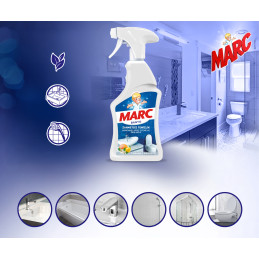 Marc Orange Bathroom Cleaner je účinný prípravok určený na odstraňovanie usadenín, špiny a nečistôt typických pre hygienické miestnosti. Aktívne zloženie si účinne poradí s mydlovými usadeninami, vodným kameňom a každodennými nečistotami a zanechá povrchy čisté a hygienické.