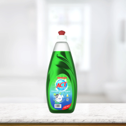ACT Apple Dishwashing Liquid je účinný prípravok kombinujúci intenzívne odmasťovanie s jemnou starostlivosťou o ruky. Tekuté zloženie dôkladne odstraňuje mastnotu, zvyšky jedla a odolné nečistoty, zanecháva riad žiarivo čistý a bez šmúh.