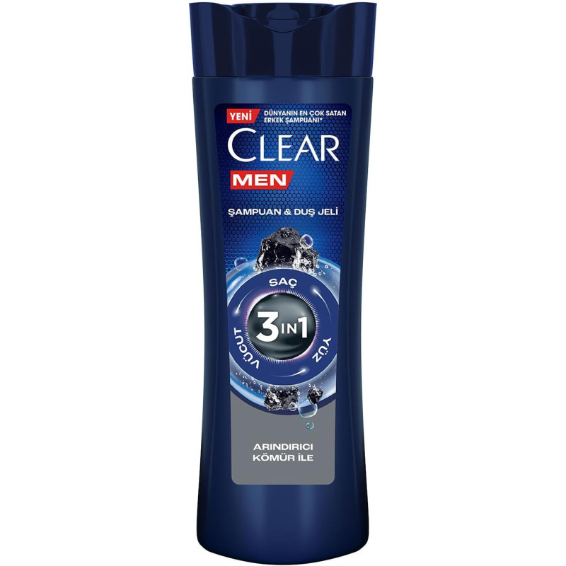 CLEAR Men 3 in 1 Purifying Charcoal Shampoo & Shower Gel je multifunkčný produkt vytvorený pre mužov, ktorí potrebujú intenzívne čistenie. Zloženie 3 v 1 poskytuje starostlivosť o vlasy, pokožku hlavy, tvár a telo. Aktívne uhlie v zložení pomáha odstraňovať nečistoty, prebytočnú mastnotu a toxíny a zanecháva pokožku a vlasy svieže, čisté a plné energie.